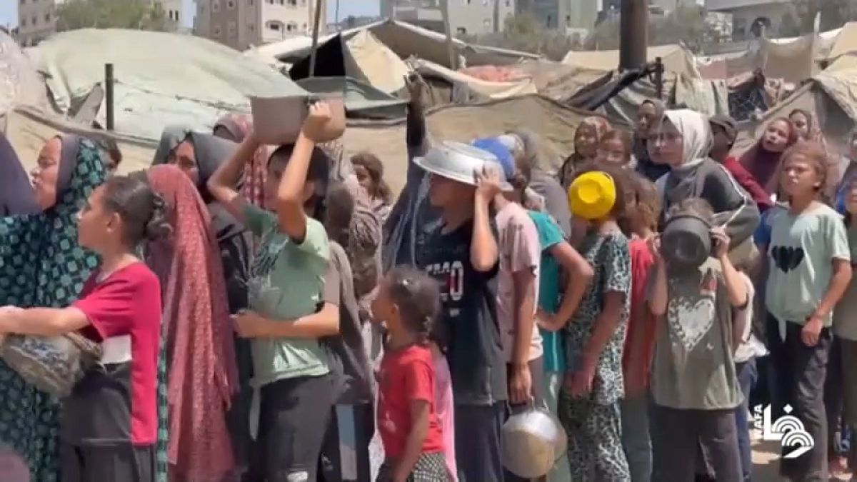 Video. Gazze'de yemek kuyruğuna giren Filistinli çocuklar